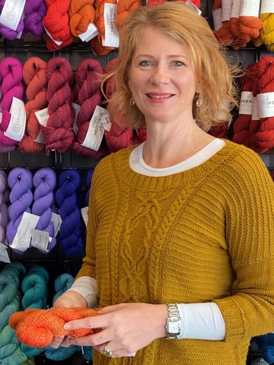 - Your teacher Lia wearing her cabled Winters Beach Cardi by Andrea Mowry.