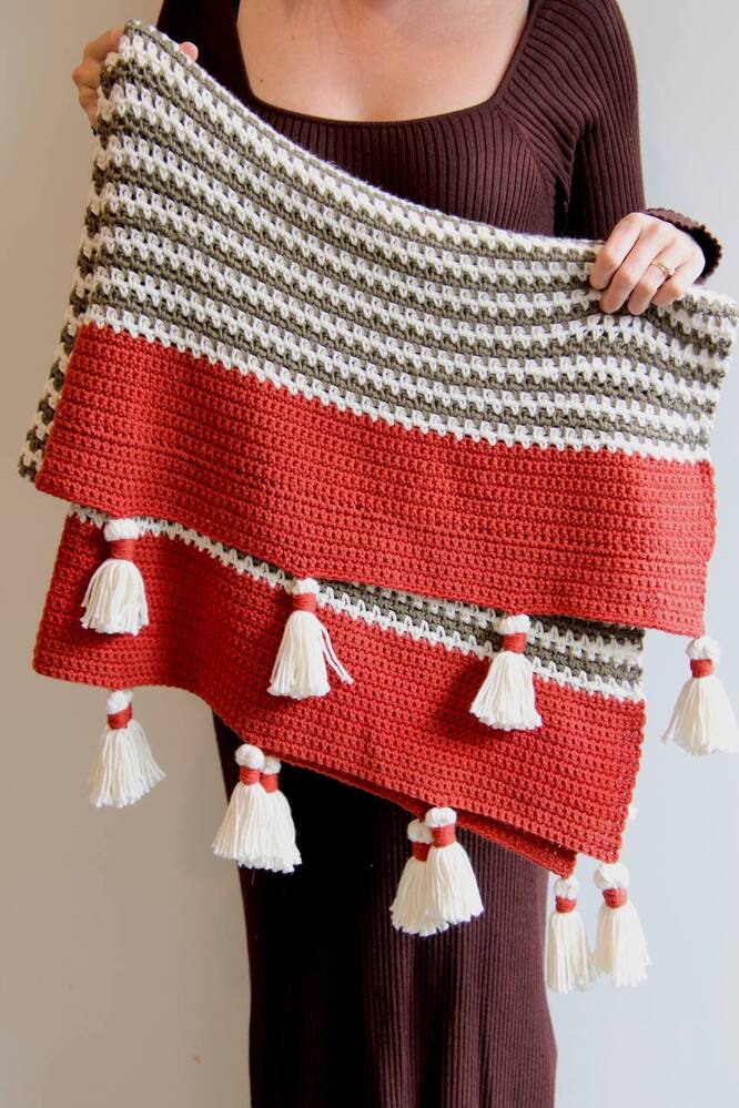 We love the cool, vintage vibe of the Boho Stripes Blanket by Michelle Greenberg, perfect crocheted in the soft cotton of 10ply Fiddlesticks Finch