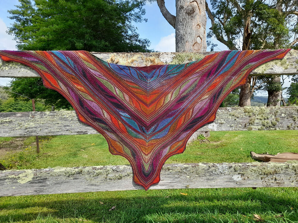 - The gorgeous Black Grape-3020 shawl was knitted by Noelene Cox.