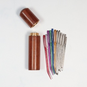 Darning and sewing in ends are simple with this set of 12 darning needles, packed in a lacquered sandalwood case with a metal screw lid. The lid screws on and off easily and stays tightly shut in your sewing basket, project bag or pocket.