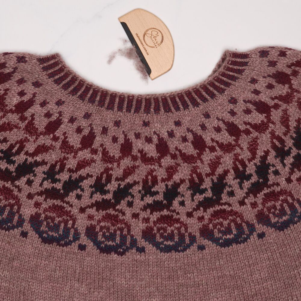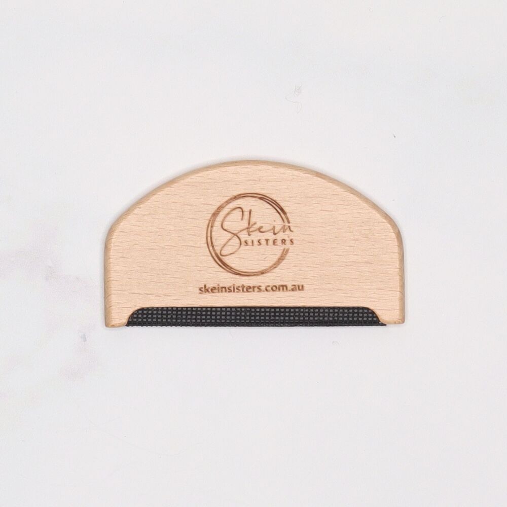 Maintain and keep your hand made garments and accessories beautiful with this handy timber Skein Sisters Fuzz Off Comb, ideal for gently removing unwanted fuzz and pills from your precious hand knits.