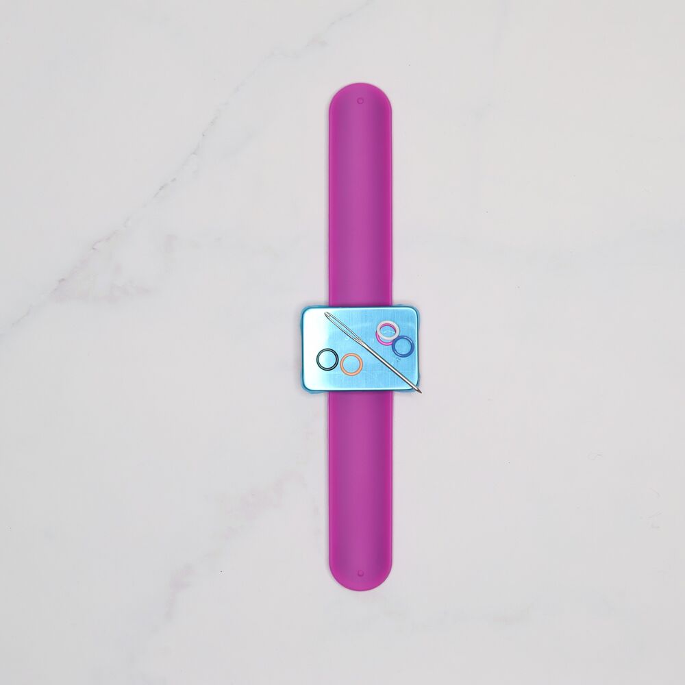 Keep your steel knitting & crochet tools and notions close by and ready to use with this convenient, magnetic by Skein Sisters Notions Band. One size fits all and it simply slaps on and off.