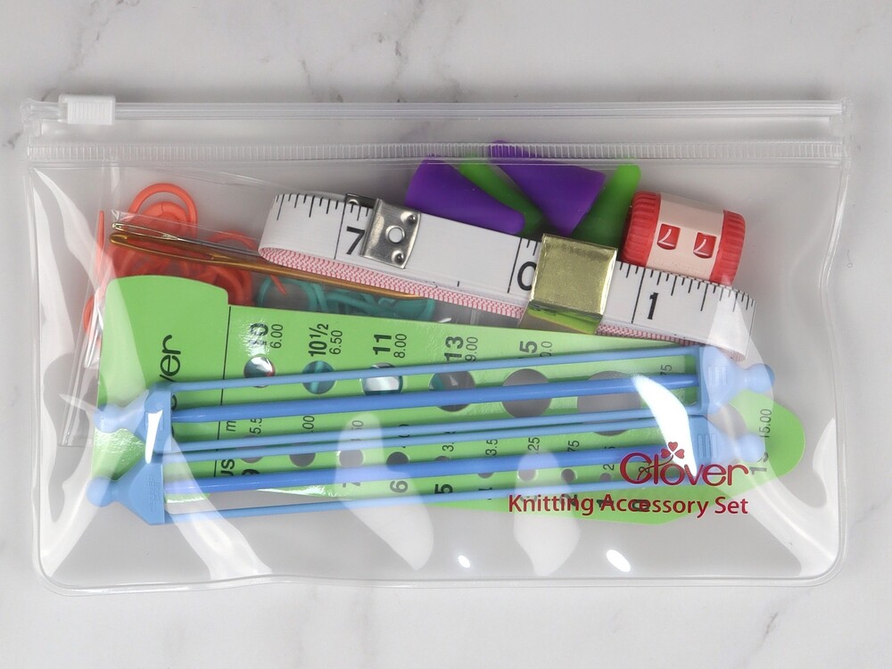 The Knit Mate is a set containing basic knitting tools in a handy zip-up case