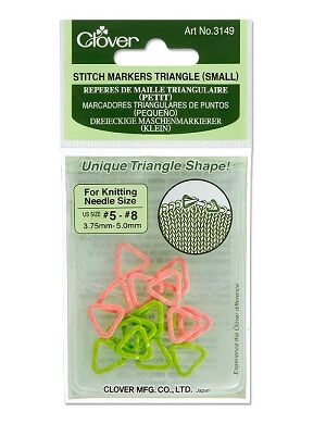 Clover Triangle stitch markers have a unique triangle shape that sets the perfect eyelet for inserting the needle in the marker as you pass it from one needle to another.