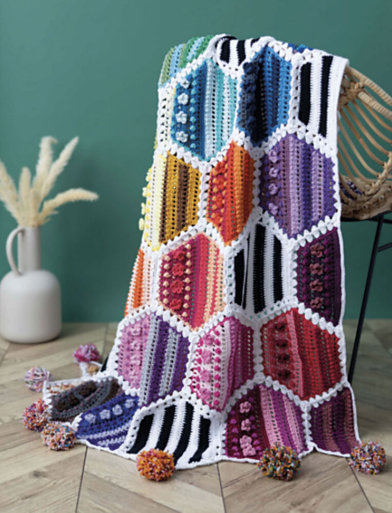 - The blankets use lots of different techniques including granny square and hexagon motifs as well as lots of different stitches such as linen stitch, mosaic crochet and different joining techniques.