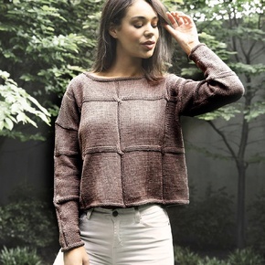 Knit the Fenton 645 women's jumper in Bellissimo Orchard, a smooth, polished cotton yarn that gives great stitch definition and vibrant colour. It’s perfect for showing off the square cabled texture in this relaxed design.