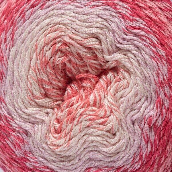 Want a gradient yarn in a large ball with subtle colour changes from end to end? These beautiful cotton/acrylic 4ply/fingering yarn cakes have a huge 990 metres of softly colour changing yarn, more than enough for a large shawl or wrap.