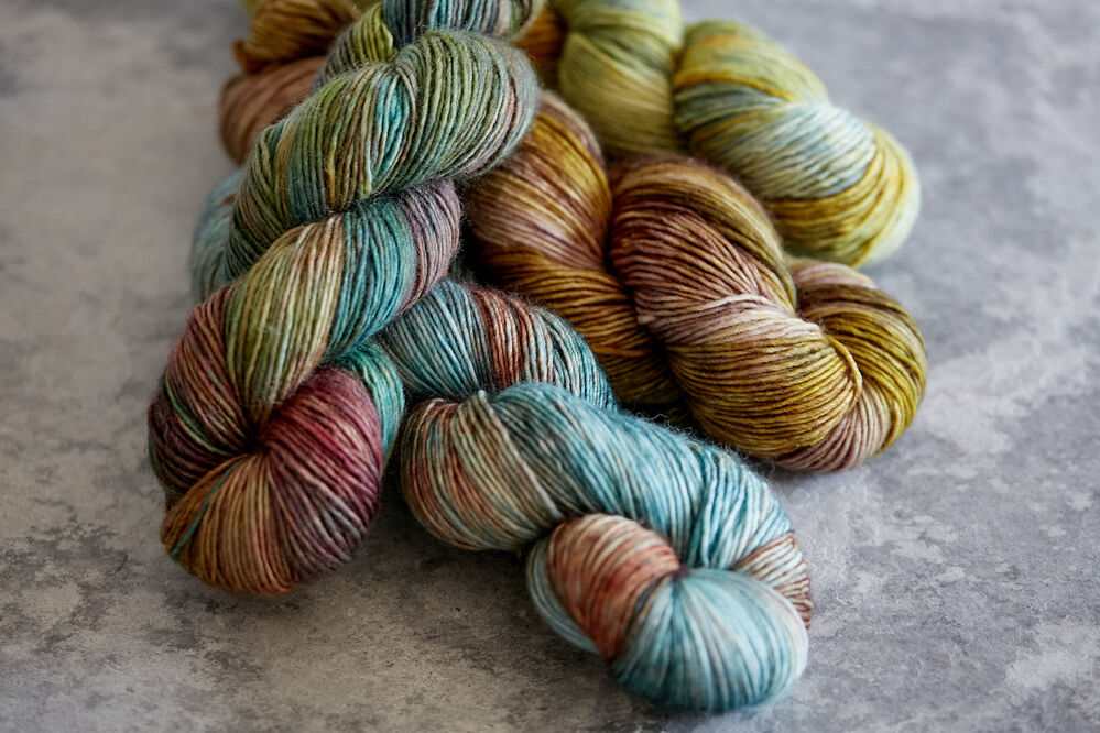 Spun from 100% superwash merino wool, Olio feels smooth and comfortable in your hands while still producing a fabric with good structure and stitch definition. The colour mixing gives simple stitches plenty of visual interest, making it a lovely choice for sweaters, accessories and textured patterns.