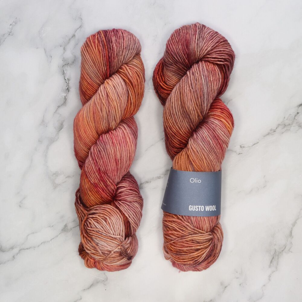 Gusto Wool Olio is a soft light worsted merino yarn with beautiful marled colour blends that add depth to every stitch. Hand dyed in Turkey, it’s perfect for sweaters, accessories and textured projects.