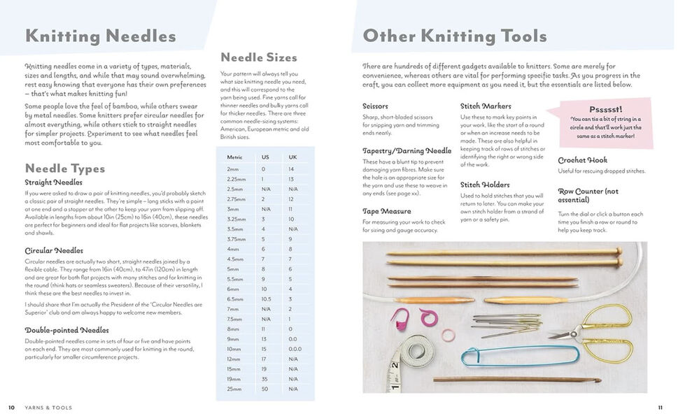 - Everything new knitters need to know, including yarns, tools, techniques and stitches;