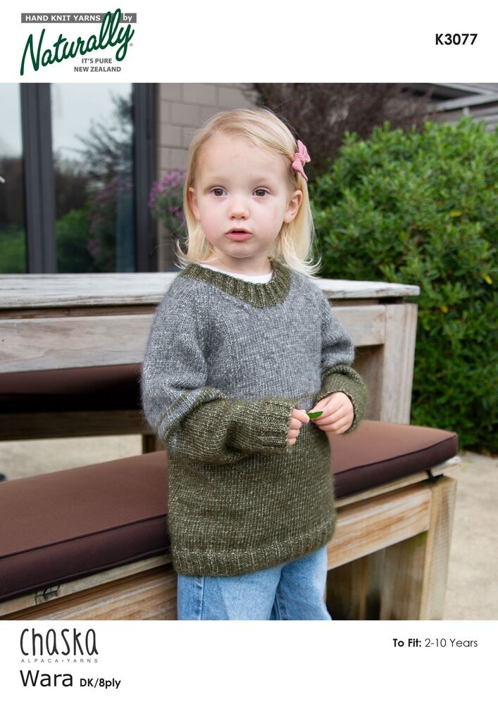 This cute and cuddly two-tone children's jumper is knit in squishy Chaska Wara, a wonderfully soft DK weight pima cotton/alpaca/wool blend, perfect for winter sweaters and accessories.
