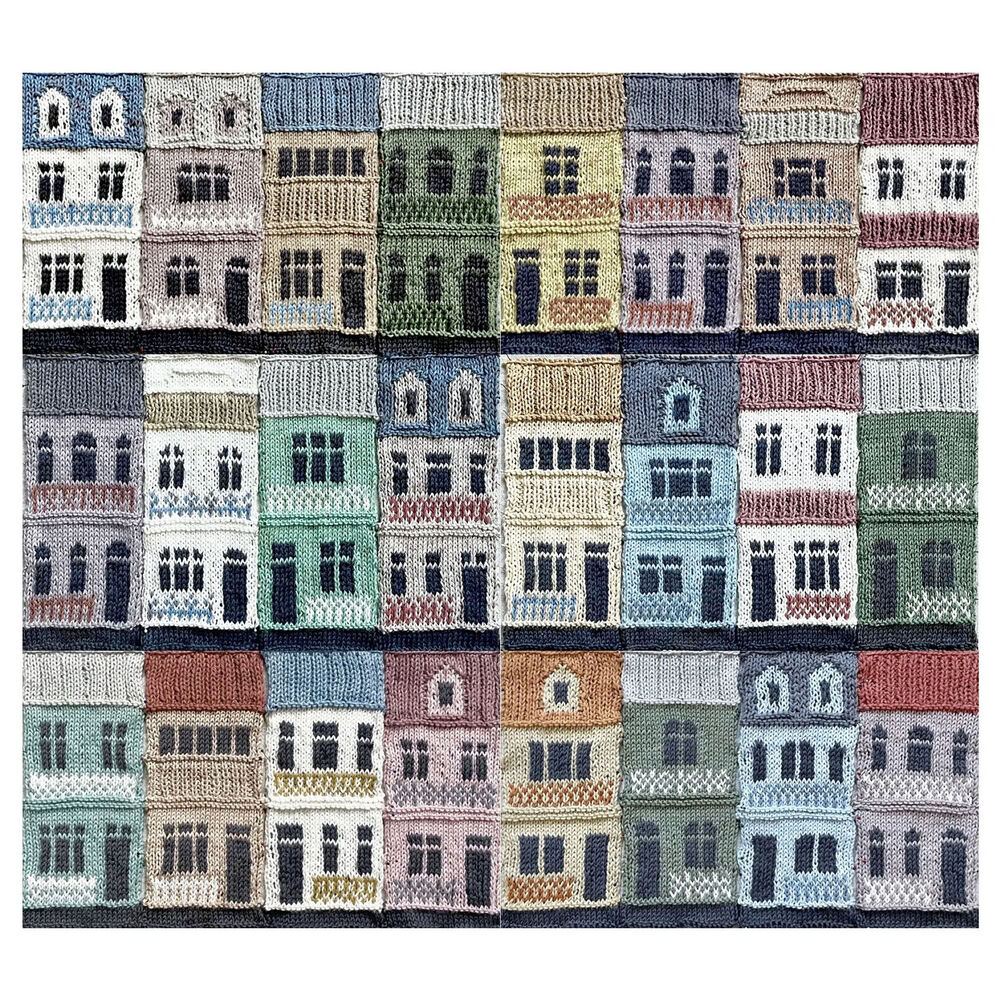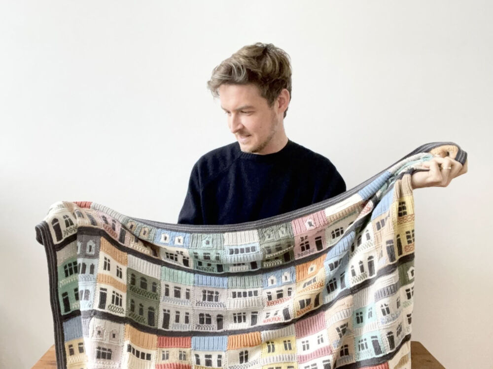 Jake Henzler is a textile artist and designer from Sydney, Australia. He has been practising and exhibiting work internationally since 2006. Working mainly with yarn and needlecraft techniques, his work ranges from knitted cityscape blankets to individual sculptural portraits and original characters. Recognisable influences include folk art traditions and popular culture, with a focus on elements of collectability, reproducibility and practical pattern-making. Jake has published a range of patterns for knitted blankets, objects and characters, both in print and online, and is most well-known for his Copenhagen Building Blocks designs. Jake's designs and other creative endeavours are all documented on his Instagram account @Boy_Knits_World and you can find Jake's patterns on his Ravelry designer page Jake Henzler.