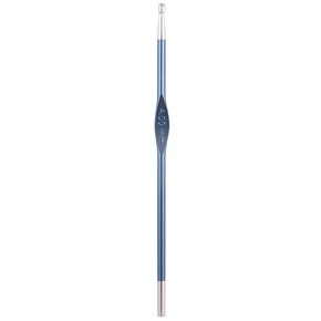 These shiny metal hooks are comfortable and light on the hands and come in a range of bright metallic colours, specific to size. Set contains nine crochet hooks in a fabric case