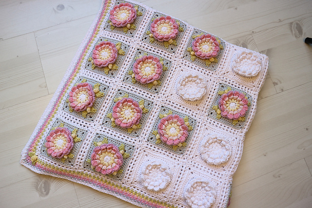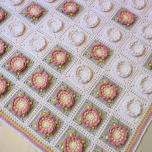 The pattern comes with two fabulously floral 3-D square designs, two super joining methods for your bunch and two blooming borders to give your blanket the perfect finishing touch. In the pattern you will find detailed stitch tutorials and much more useful info! It would make a sweet and delightful gift — make it for baby, make it for Mum, make it for Grandma... you know you need to make one for yourself too! It's perfect for flower lovers of all ages!