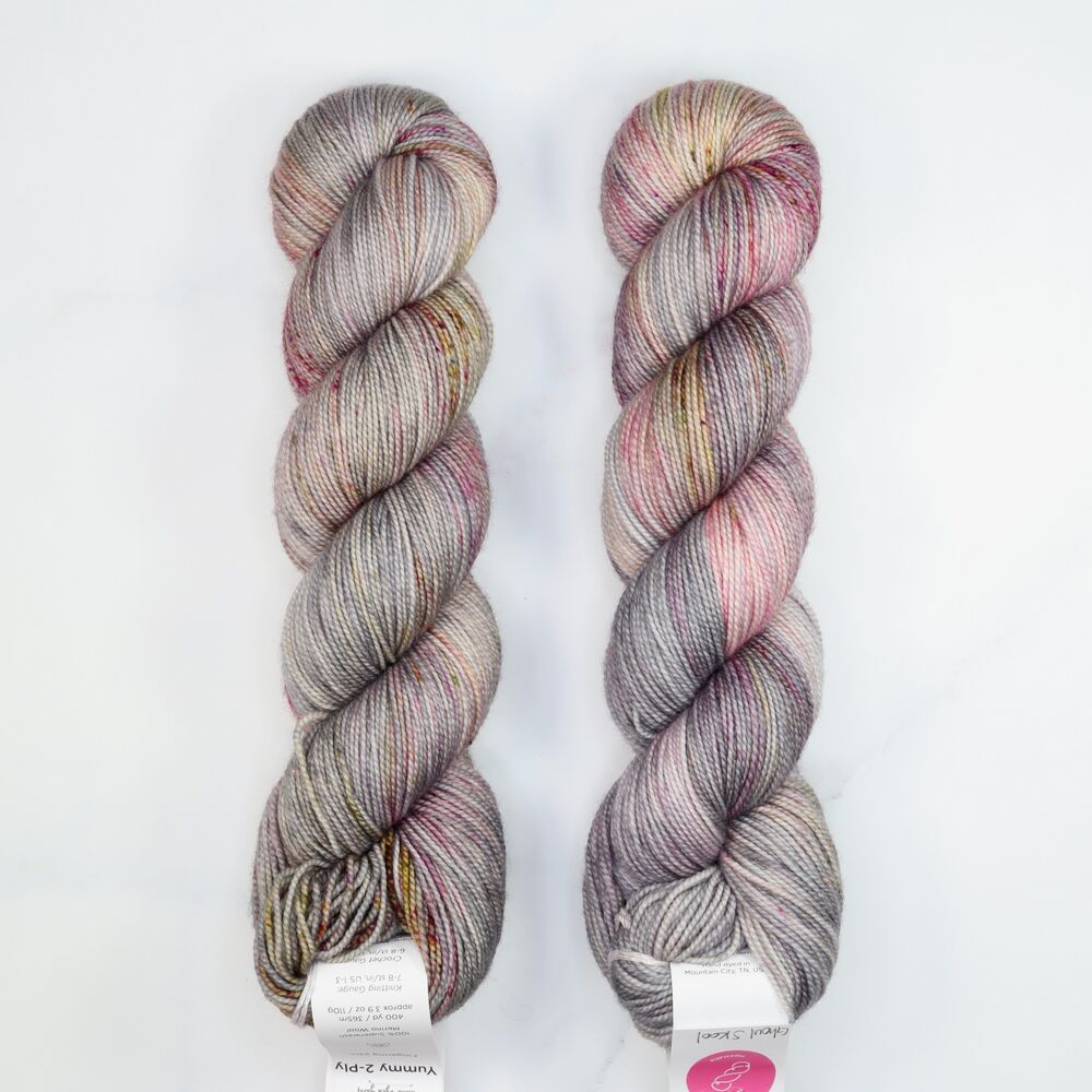 Introducing Miss Babs Yummy 2-Ply! Have fun exploring all the wonderful semi-solid and multicolours this gorgeous hand dyed 4ply / fingering weight yarn comes in. The yarn has a high twist, creating a beautiful texture. We love it!