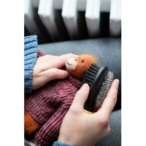 Cinthia Vallet is a designer living in Nantes, France, with her husband, four children and furry companions. She is known for her charming, seamlessly knitted toy animals. They started to take shape in her mind after she discovered the magic of seamless knitting, and her first pattern was published in 2018. Cinthia realised that if you can make a sock and shape a heel, then you can also shape a little animal directly on the needles.