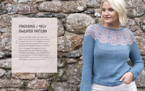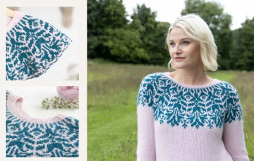 Renowned designer Olga Putano has designed three basic sweater patterns for different yarn weights – DK (8ply), fingering (sock or 4 ply) and worsted (10ply) – so you can choose your preferred style, and then there are patterns for four different yoke designs for each of the basic sweaters. The yoke designs feature stunning but simple colourwork so you can get really creative with your favourite colour palette. The patterns only use two colours in a row, so they are suitable for beginner to intermediate knitters but exciting enough to appeal to experienced knitters.