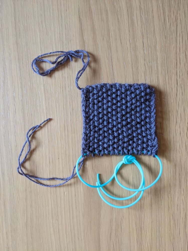 Using a 5mm circular needle (with min 55cm cable) and a DK yarn, work a seed stitch swatch as follows: