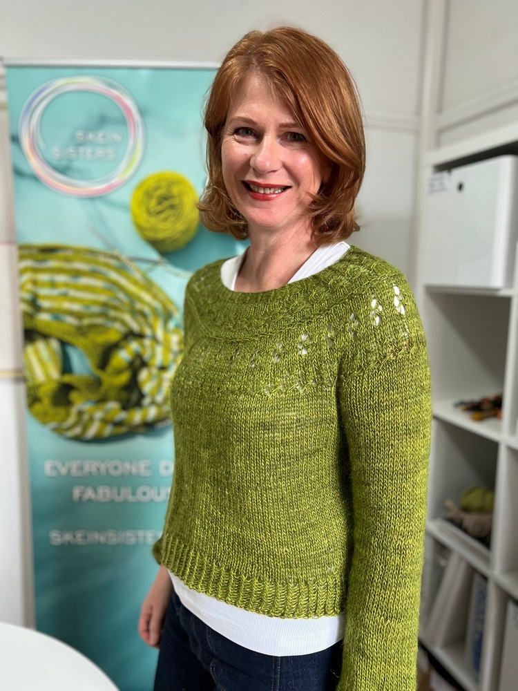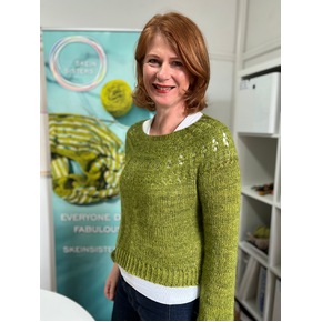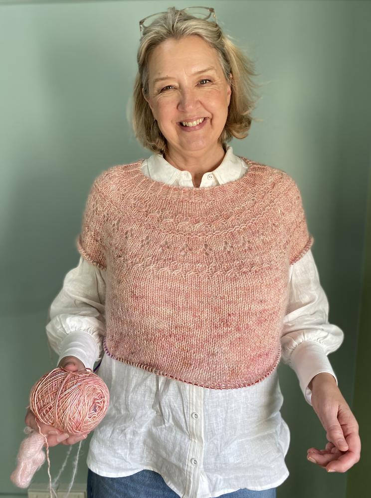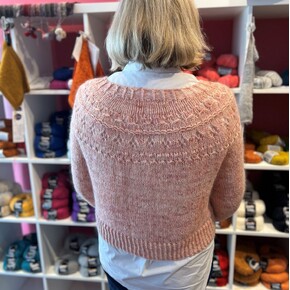 There are loads of ways to customise the jumper, and we love a winter version made with a fingering weight yarn held with a fluffy laceweight yarn such as a mohair or alpaca. You can choose from smaller or wider neckline, and short sleeves or long puff sleeves with/without diagonal cuff line. Choose whatever length you prefer + there's HEAPS of videos to help you with all the techniques.
