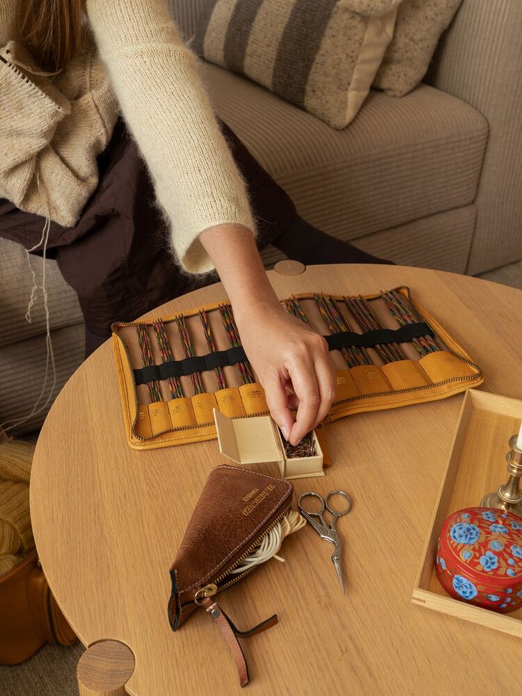 Keep your short knitting needles organised with Project 103. It's designed for 20 cm double-pointed needles, with clearly marked sizes from 2 mm to 8 mm and a zip closure.