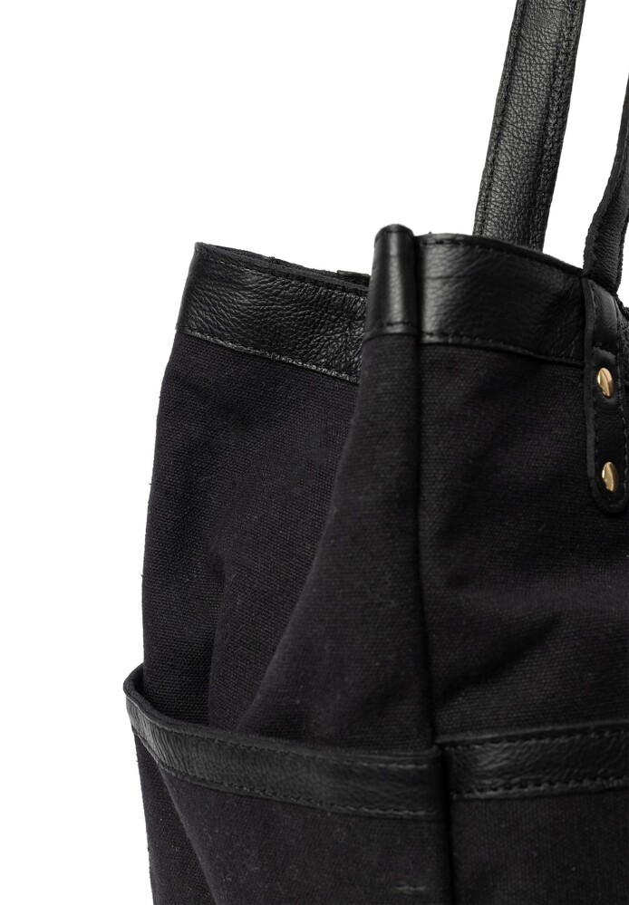 - Handcrafted leather and heavy canvas