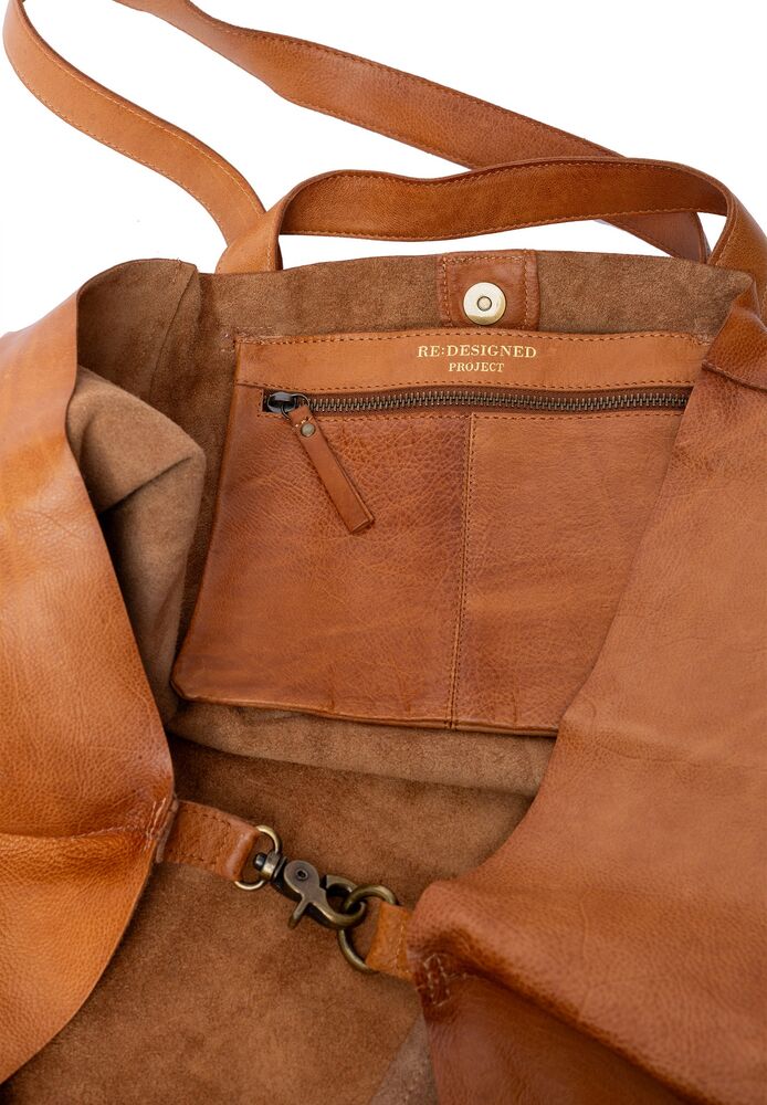 The Re:Designed Project Fie is a spacious, minimal tote with a slouchy shape and zipped pocket inside. This double top handle bag has a roomy interior that offers the extra storage space you need