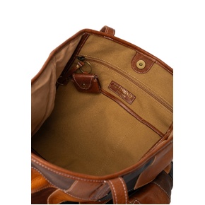 Torn & Cut minimises the waste by reusing the assorted pieces of torn and cut skins, giving new life to the leather. The waste leather is cut into smaller squares and stitched together carefully ensuring a unique and beautiful project bag where no two are the same.
