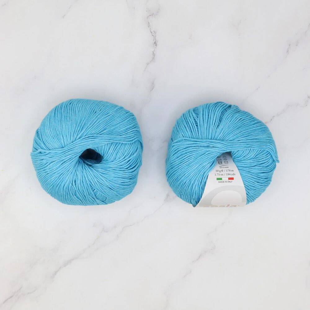 Sesia Jeans is a beautifully soft 4-5ply / fingering-sport weight 100% Egyptian cotton, which has a lovely range of colours with a matte, heathered finish, just like your favourite pair of denim jeans.