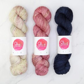 Choose from a gorgeous array of 3 skein sets in our signature Skein Sisters Fabulous Sock yarn. These are some of our favourites, put together to help you get a head start on all those beautiful 3 skein patterns we love. Take a look at some of the hundreds of 3 colour patterns available on Ravelry. Colourways in stock vary, but if the combo you love isn't available, you can beat the queue and order from our dyed to order service.