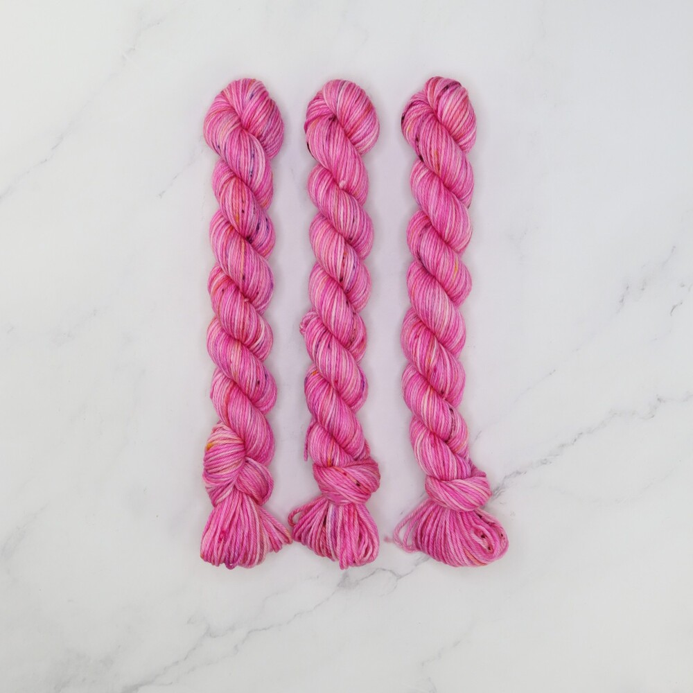 These 20g mini skeins of Fabulous Sock wool / nylon blend 4ply yarn are perfect for adding a pop of colour to your hand knitting and crochet projects. Available in a stunning array of variegated, tonal, speckled and semi solid colours. Hand dyed in Sydney