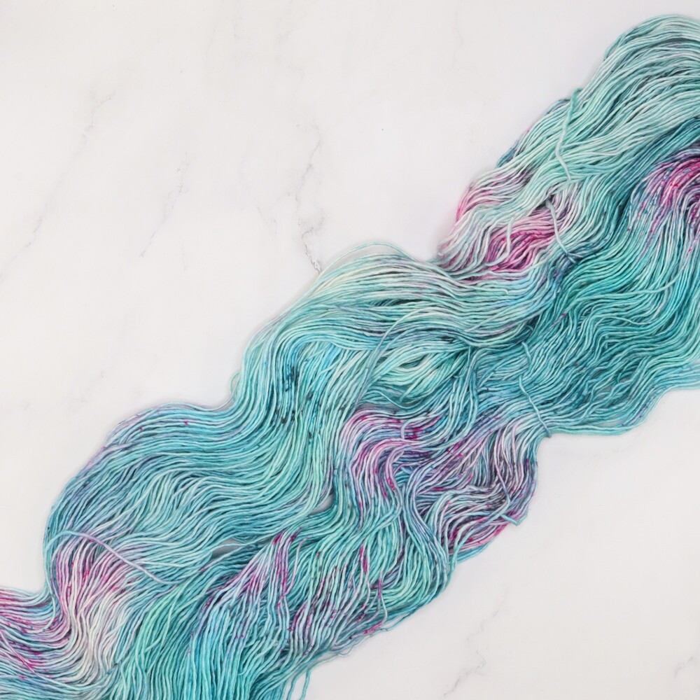 Skein Sisters Romance yarn - with the softness of Australian merino wool, the elegance of silk & truly beautiful colours, Romance is a single ply fingering weight yarn that will take your breath away. Luxurious silk-wool 4ply yarn hand dyed in Sydney