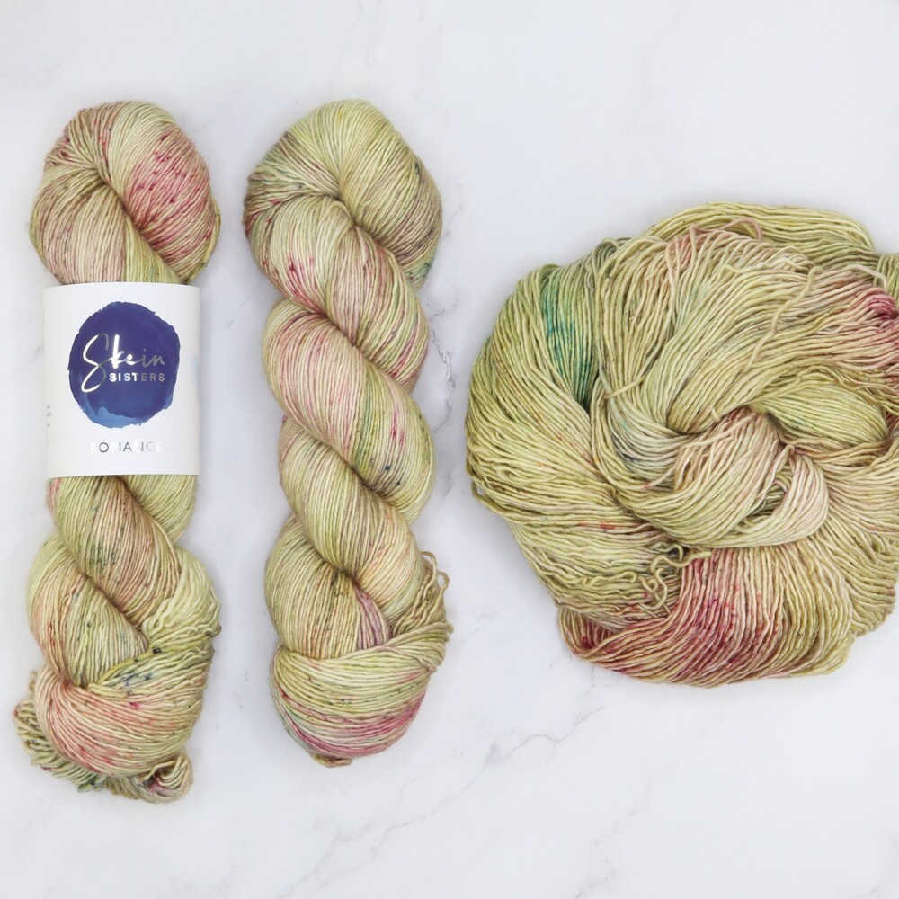 Skein Sisters Romance yarn - with the softness of Australian merino wool, the elegance of silk & truly beautiful colours, Romance is a single ply fingering weight yarn that will take your breath away. Luxurious silk-wool 4ply yarn hand dyed in Sydney