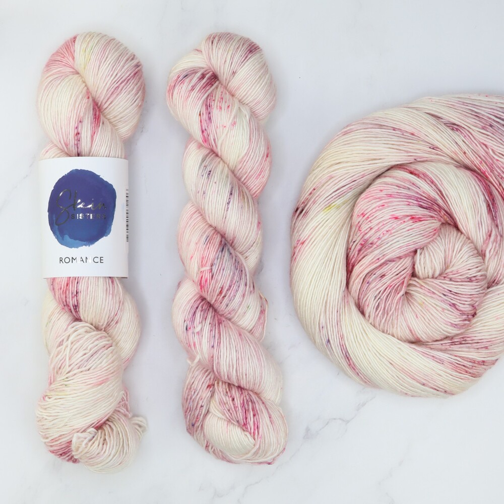 Skein Sisters Romance yarn - with the softness of Australian merino wool, the elegance of silk & truly beautiful colours, Romance is a single ply fingering weight yarn that will take your breath away. Luxurious silk-wool 4ply yarn hand dyed in Sydney