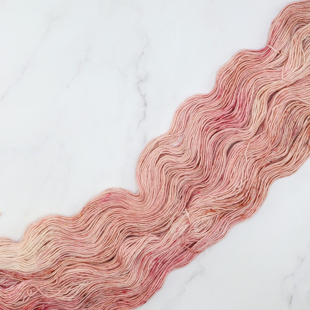 Skein Sisters Romance yarn - with the softness of Australian merino wool, the elegance of silk & truly beautiful colours, Romance is a single ply fingering weight yarn that will take your breath away. Luxurious silk-wool 4ply yarn hand dyed in Sydney