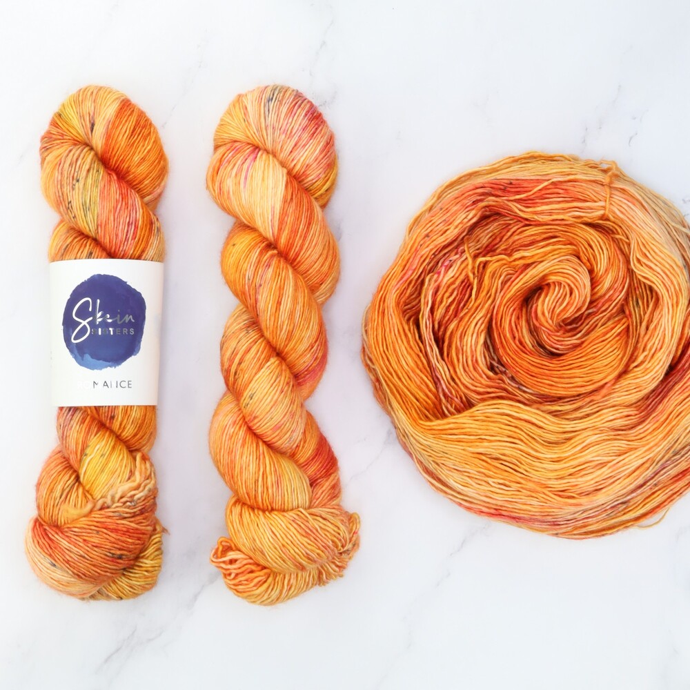 Skein Sisters Romance yarn - with the softness of Australian merino wool, the elegance of silk & truly beautiful colours, Romance is a single ply fingering weight yarn that will take your breath away. Luxurious silk-wool 4ply yarn hand dyed in Sydney