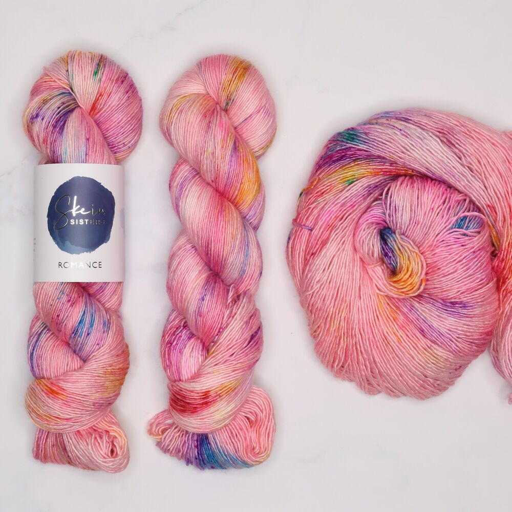 Skein Sisters Romance yarn - with the softness of Australian merino wool, the elegance of silk & truly beautiful colours, Romance is a single ply fingering weight yarn that will take your breath away. Luxurious silk-wool 4ply yarn hand dyed in Sydney