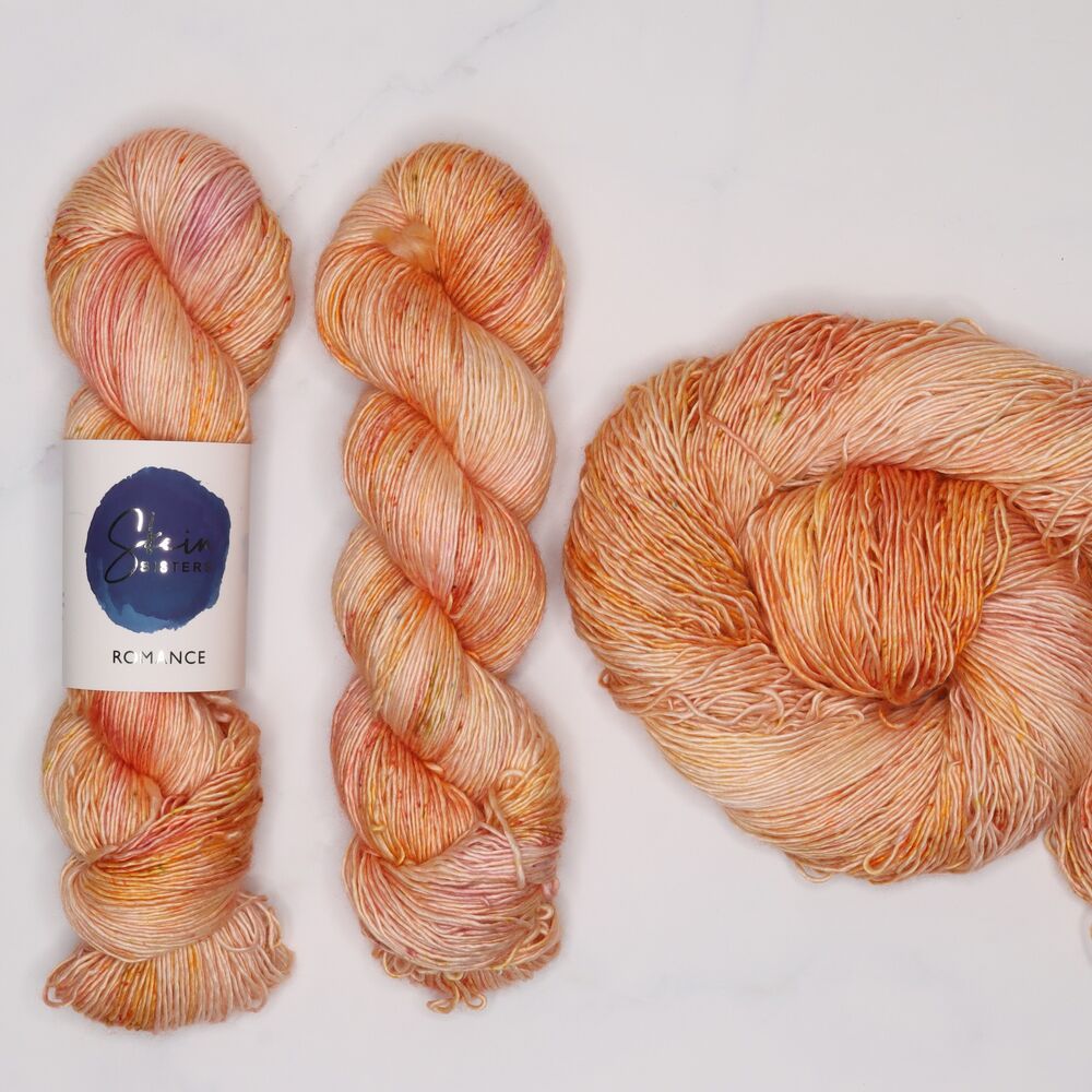 Skein Sisters Romance yarn - with the softness of Australian merino wool, the elegance of silk & truly beautiful colours, Romance is a single ply fingering weight yarn that will take your breath away. Luxurious silk-wool 4ply yarn hand dyed in Sydney