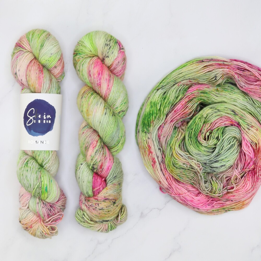 Skein Sisters Romance yarn - with the softness of Australian merino wool, the elegance of silk & truly beautiful colours, Romance is a single ply fingering weight yarn that will take your breath away. Luxurious silk-wool 4ply yarn hand dyed in Sydney